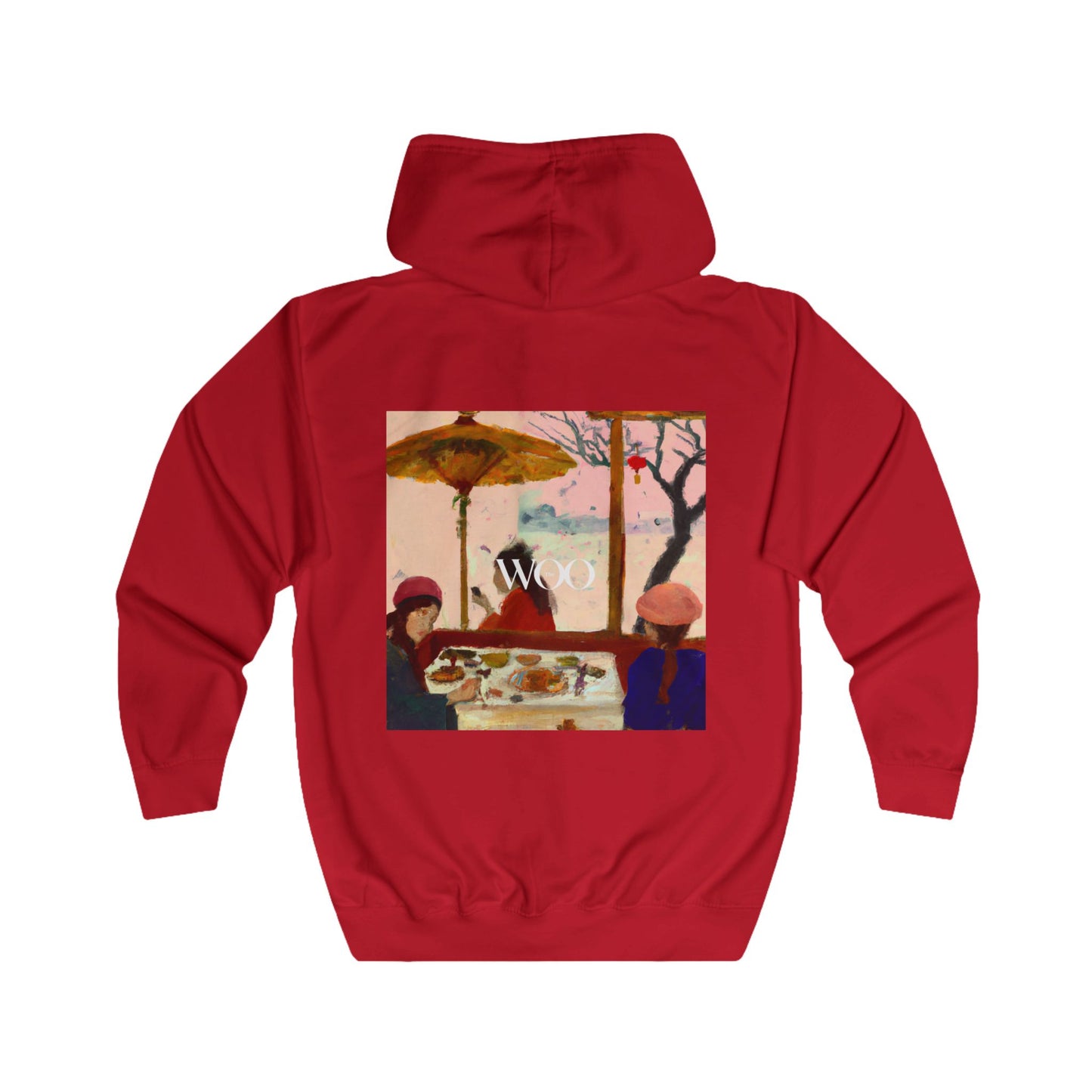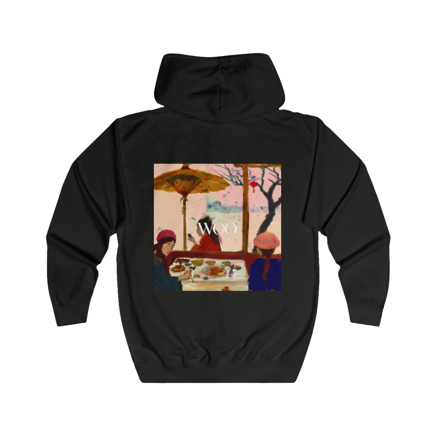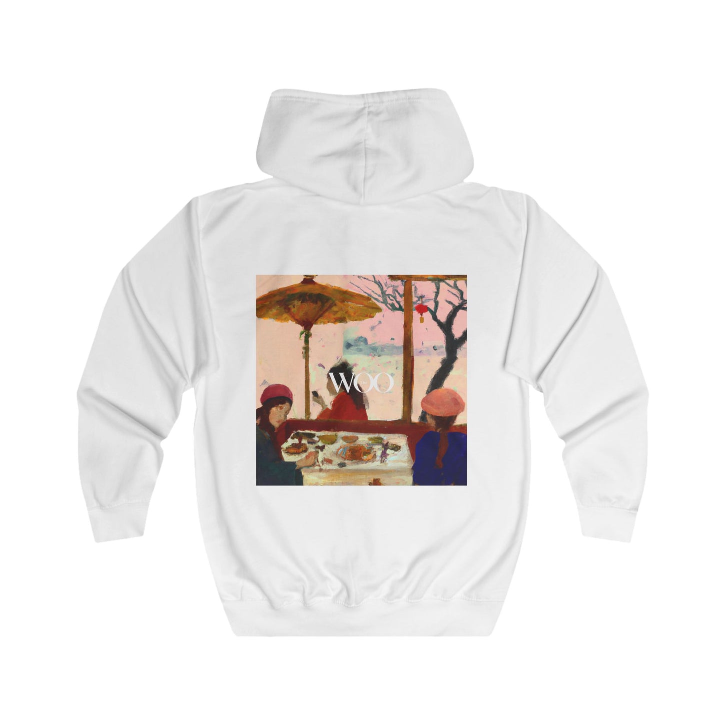 This luxurious tailored full zip hoodie features a stunning painting of two women in 1920's attire, swinging around a playground and enjoying icecreams. Soft and comfortable, this item is made of quality materials and come in a variety of sizes. Perfect for anyone who loves a bit of luxury and style! #luxury #tailored #hoodie #paintings #women #1920s #playground #swings #icecream #style #comfort #quality